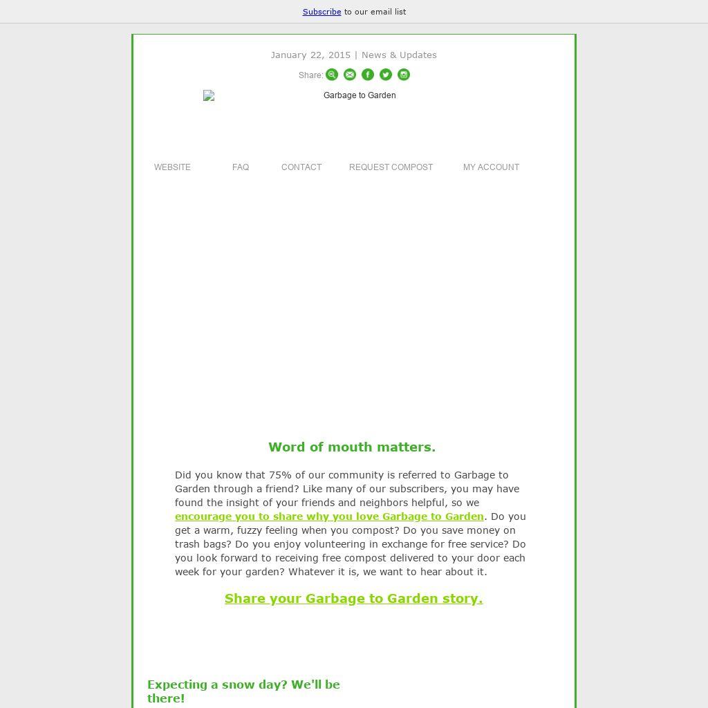 1. Even if there's a snow ban we will be collecting buckets on your pick up day, no matter what.* That said, snow can make our routes go a little slower than usual.