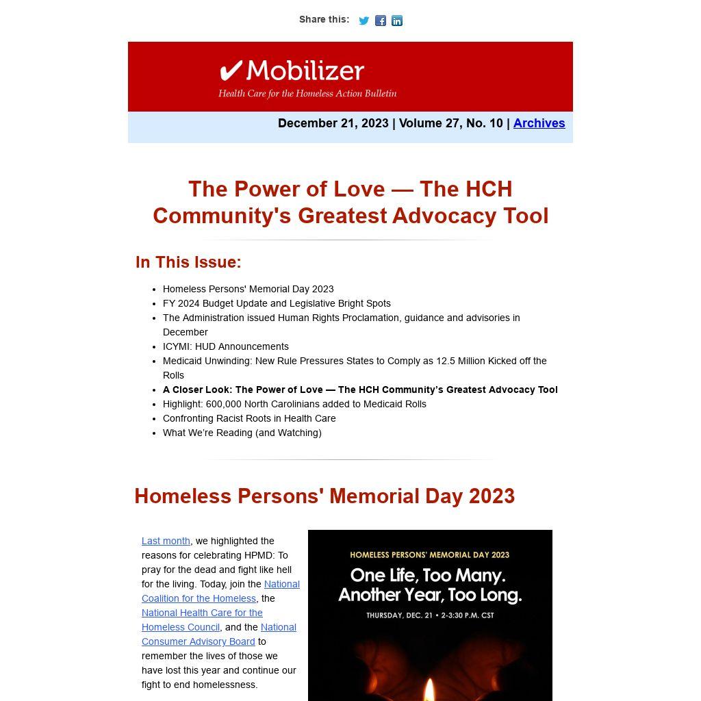 - A Closer Look: The Power of Love — The HCH Community’s Greatest Advocacy Tool