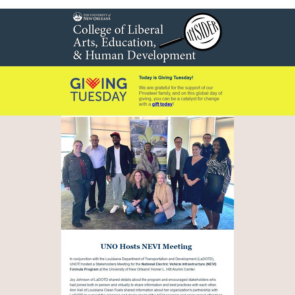 In conjunction with the Louisiana Department of Transportation and Development (LaDOTD), UNOTI hosted a Stakeholders Meeting for the National Electric Vehicle Infrastructure (NEVI) Formula Program at the University of New Orleans' Homer L. Hitt Alumni Center.
