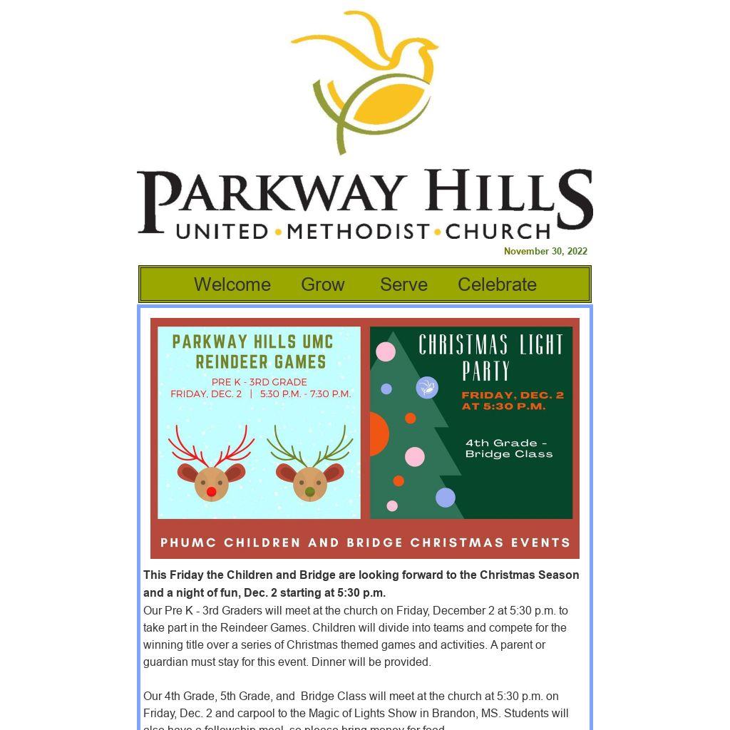 May we all journey through this season together in worship, in study and reflection, and in celebration. See you at Parkway Hills and invite a friend!