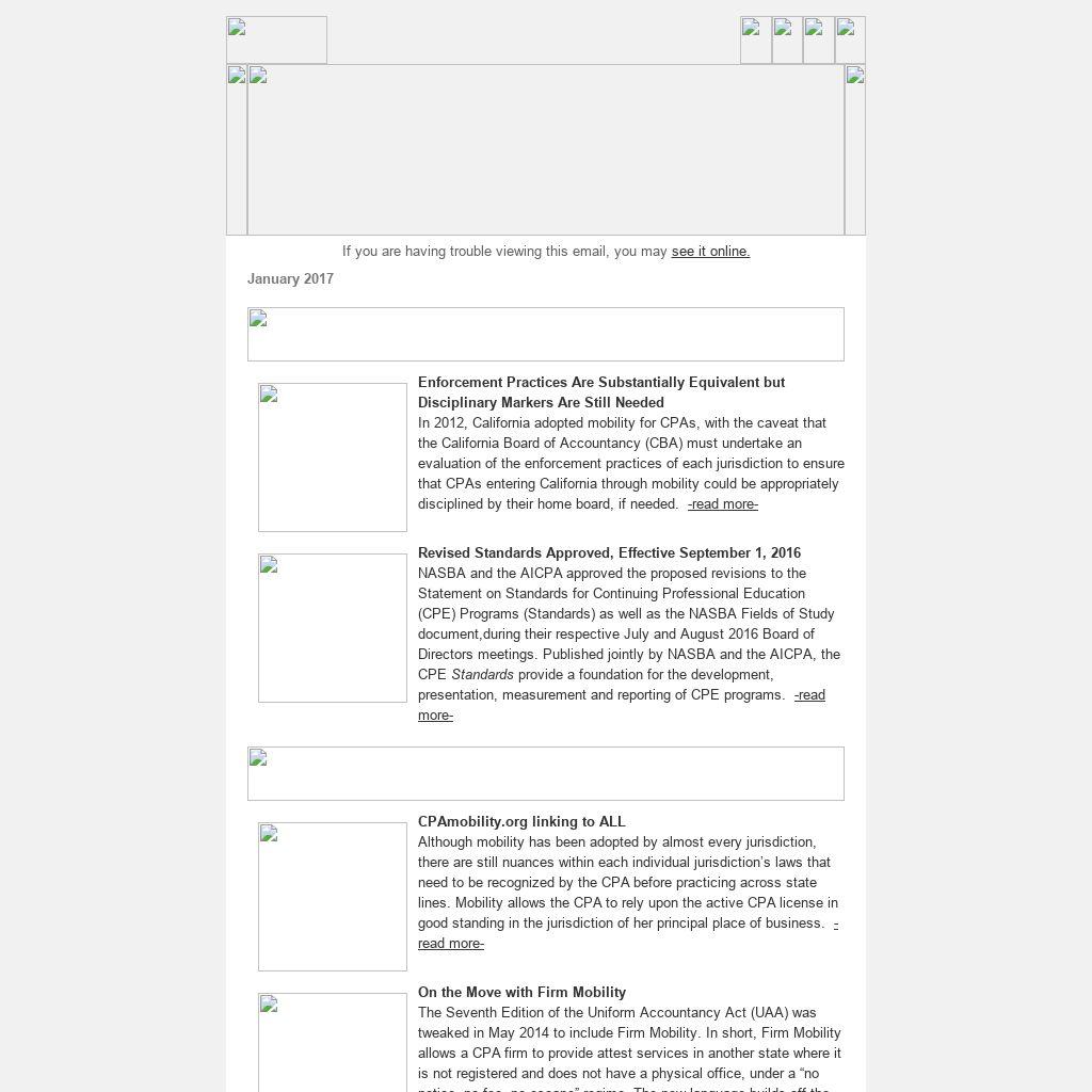 Enforcement Practices Are Substantially Equivalent but Disciplinary Markers Are Still Needed In 2012, California adopted mobility for CPAs, with the caveat that the California Board of Accountancy (CBA) must undertake an evaluation of the enforcement practices of each jurisdiction to ensure that CPAs entering California through mobility could be appropriately disciplined by their home board, if needed.-read more-