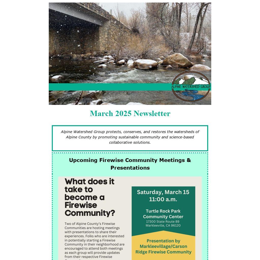 | Alpine Watershed Group protects, conserves, and restores the watersheds of Alpine County by promoting sustainable community and science-based collaborative solutions.