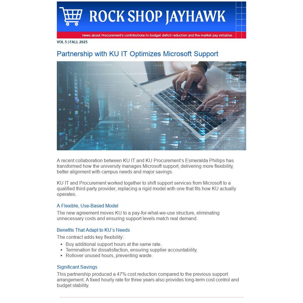KU IT and Procurement worked together to shift support services from Microsoft to a qualified third-party provider, replacing a rigid model with one that fits how KU actually operates.