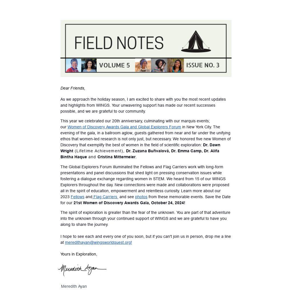 As we approach the holiday season, I am excited to share with you the most recent updates and highlights from WINGS. Your unwavering support has made our recent successes possible, and we are grateful to our community.