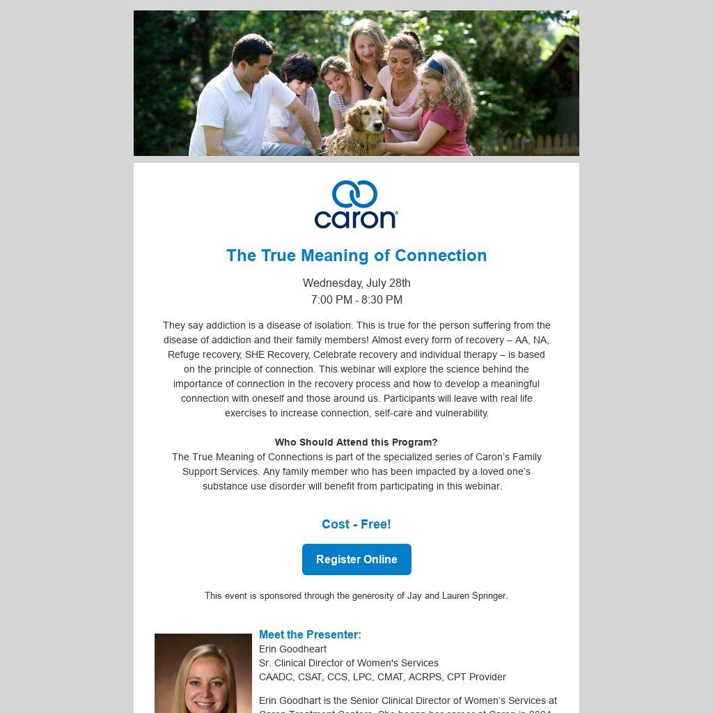Erin Goodhart is the Senior Clinical Director of Women’s Services at Caron Treatment Centers. She began her career at Caron in 2004 working with the teen population. Since that time, she has worked with the Adult Mens and Women’s Programs.