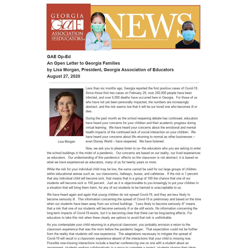 During the past month as the school reopening debate has continued, educators have heard your concerns for your children and their academic progress during virtual learning. We have heard your concerns about the emotional and mental health impacts of the continued lack of social interaction on your children. We have heard your concerns about life returning to normal as other businesses – even Disney World – have reopened. We have listened.