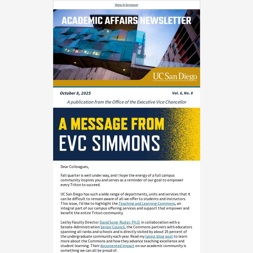 UC San Diego has such a wide range of departments, units and services that it can be difficult to remain aware of all we offer to students and instructors. This issue, I’d like to highlight the Teaching and Learning Commons, an integral part of our campus offering services and support that empower and benefit the entire Triton community.