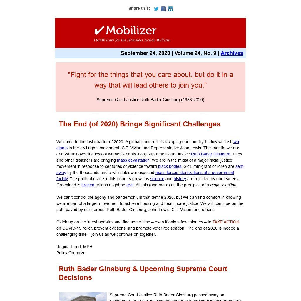 We can’t control the agony and pandemonium that define 2020, but we can find comfort in knowing we are part of a larger movement to achieve housing and health care justice. We will continue on the path paved by our heroes: Ruth Bader Ginsburg, John Lewis, C.T. Vivian, and others.
