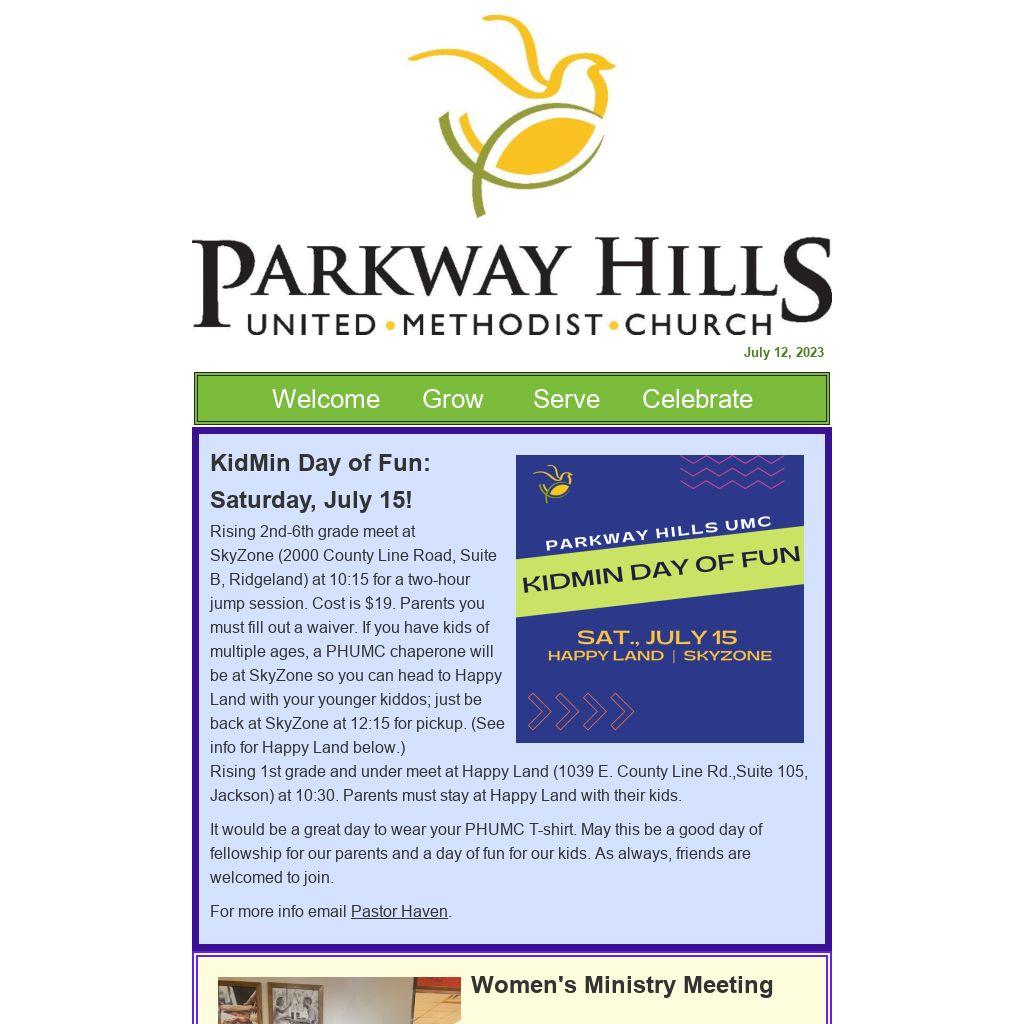 Parkway Hills is a United Methodist congregation committed to being a place for everyone, so we want to pay particular attention to inviting members of our community who may have been affected by church disaffiliations or those who simply are looking for a safe place to worship. How can you help? Invite your friends to church, and share this welcome video that has been posted across Parkway Hills' Facebook and Instagram. Your voice matters in welcoming our community!