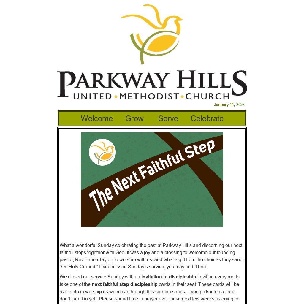 Parkway Hills has much to celebrate and many celebratory days ahead. Let us not miss any of our chances to partner with God in the work God is calling us to do. Let us commit, as individual disciples of Jesus Christ and as one body united in Christ to take our next faithful steps.