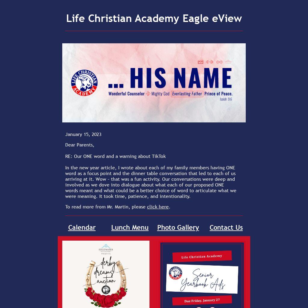 If your child will be absent due to illness, or other planned events, please contact us at attendance@life-christian.org so we can update their attendance record and notify their teachers. If you have any questions, please reach out, we would love to help!