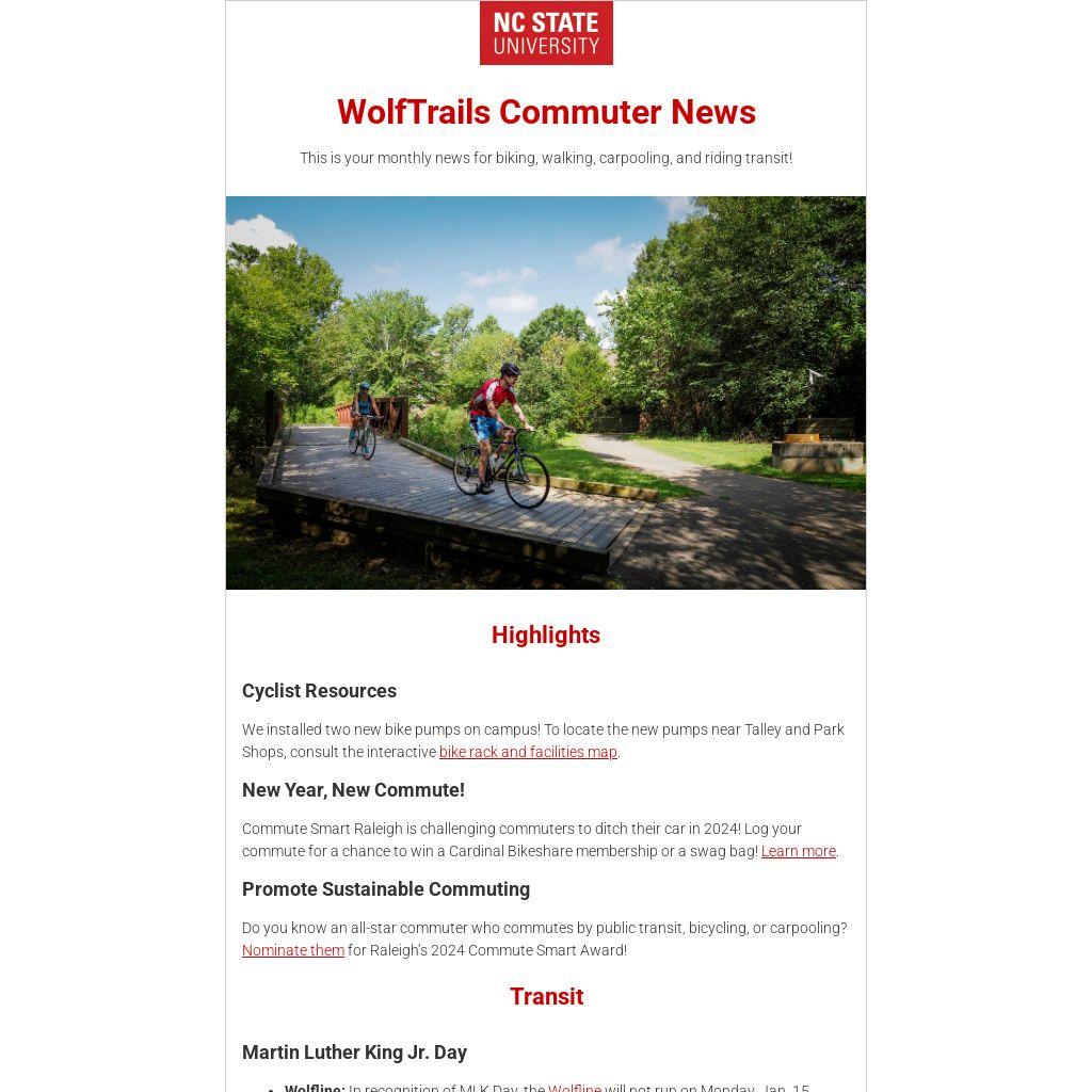 This is your monthly news for biking, walking, carpooling, and riding transit!