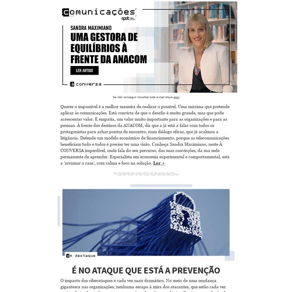 Querer o impossível é a melhor maneira de realizar o possível. Uma máxima que pretende aplicar às comunicações. Está convicta de que o desafio é muito grande, mas que pode acrescentar valor. E empatia, um valor muito importante para as organizações e para as pessoas. À frente dos destinos da ANACOM, diz que a já está a falar com todos os protagonistas para achar pontos de encontro, num diálogo eficaz, que já acalmou a litigância. Defende um modelo económico de financiamento, porque as telecomunicações beneficiam tudo e todos é preciso ter uma visão. Conheça Sandra Maximiano, neste À CONVERSA imperdível, onde fala do seu percurso, das suas convicções, da sua sede permanente de aprender. Especialista em economia experimental e comportamental, está a ‘arrumar a casa’, com calma e foco na solução. Ler +