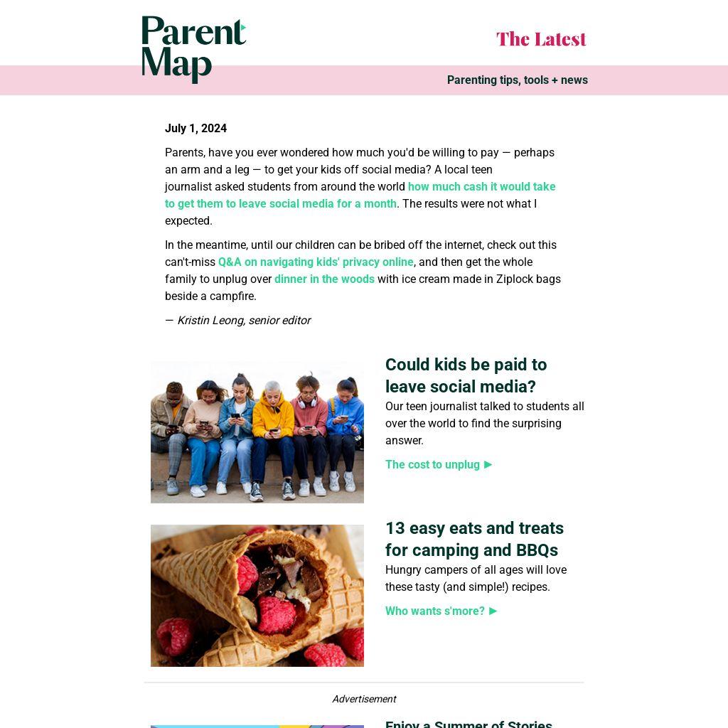 In the meantime, until our children can be bribed off the internet, check out this can't-miss Q&A on navigating kids' privacy online, and then get the whole family to unplug over dinner in the woods with ice cream made in Ziplock bags beside a campfire.Â