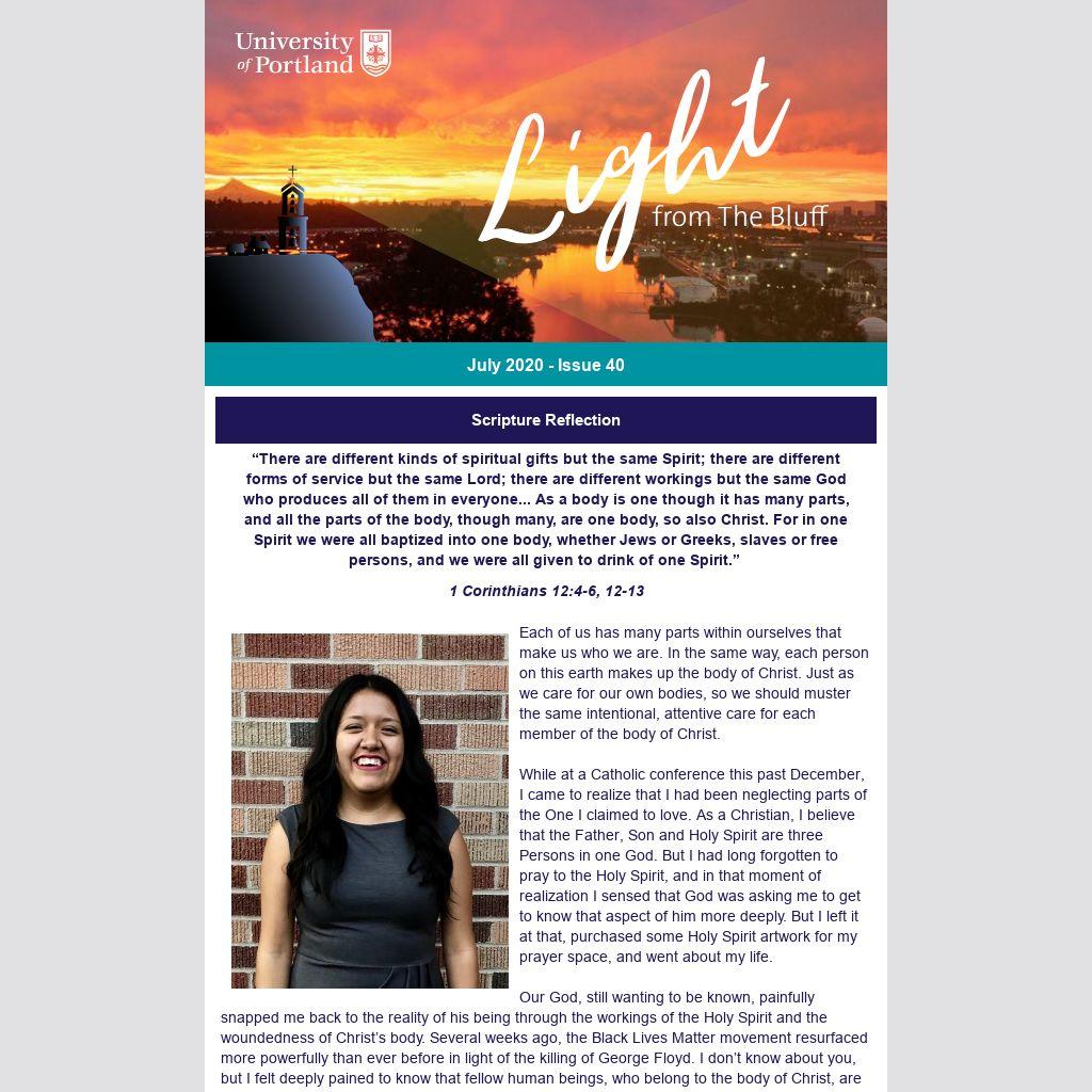 On the day of Pentecost, I heard the Holy Spirit whisper to me in the words of the Sunday readings, “There are different forms of action but the same cause.” I felt so encouraged. We don’t have to do it all. We should each embrace our unique combinations of gifts, both spiritual and secular, for these gifts make up who we are – and we make up who Christ is on this earth. Through prayer, the Holy Spirit helps us discern the ways in which we are called to help those who have been oppressed. Not only that, but the Holy Spirit gives us the graces we need to work through the tough truths that we may encounter on this journey towards truly loving our Black brothers and sisters.