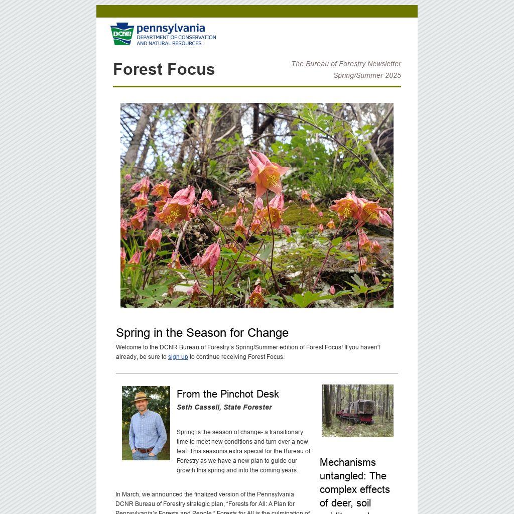 Spring is the season of change- a transitionary time to meet new conditions and turn over a new leaf. This seasonis extra special for the Bureau of Forestry as we have a new plan to guide our growth this spring and into the coming years.