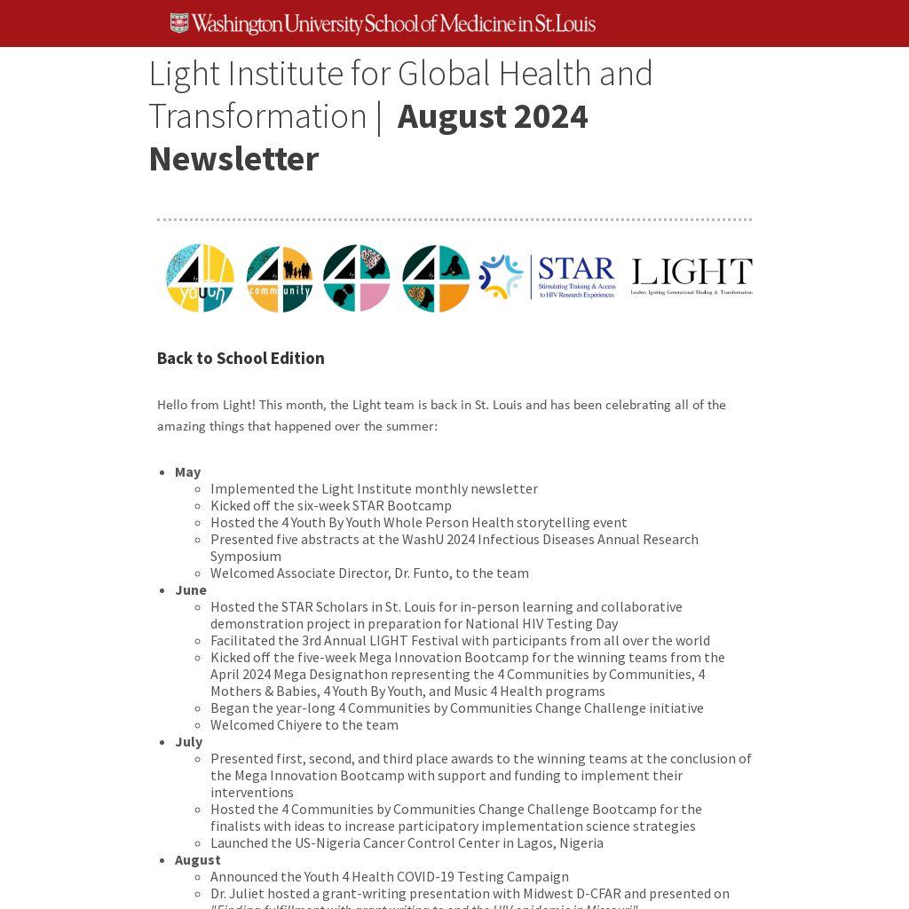 Light Institute for Global Health and Transformation | August 2024 Newsletter |