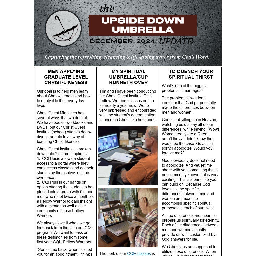 Tim and I have been conducting the Christ Quest Institute Plus Fellow Warriors classes online for nearly a year now. We’re very impressed and encouraged with the student’s determination to become Christ-like husbands.