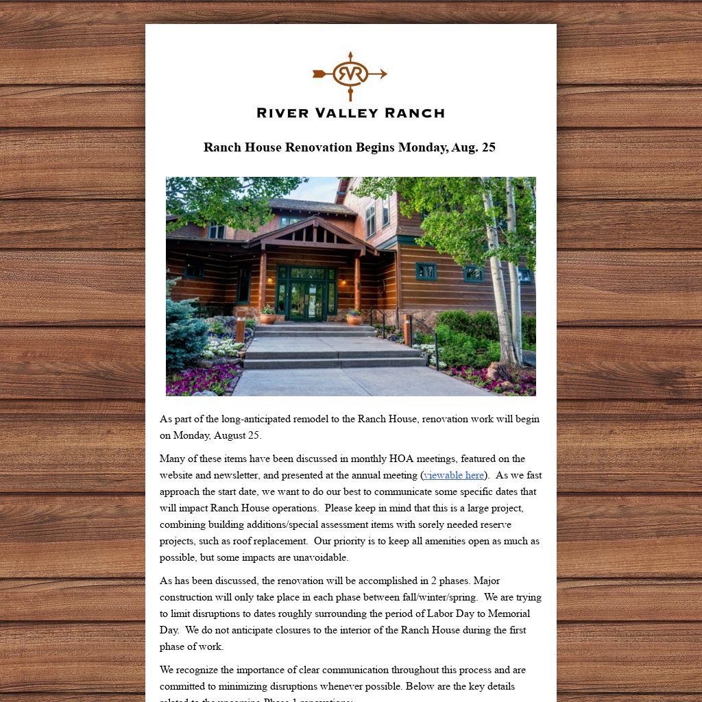 As part of the long-anticipated remodel to the Ranch House, renovation work will begin on Monday, August 25.
