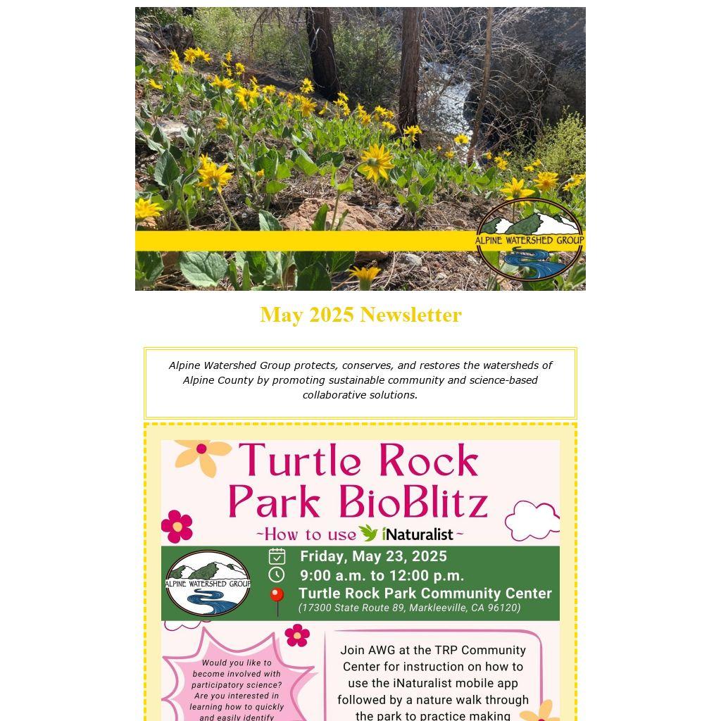 | Alpine Watershed Group protects, conserves, and restores the watersheds of Alpine County by promoting sustainable community and science-based collaborative solutions.