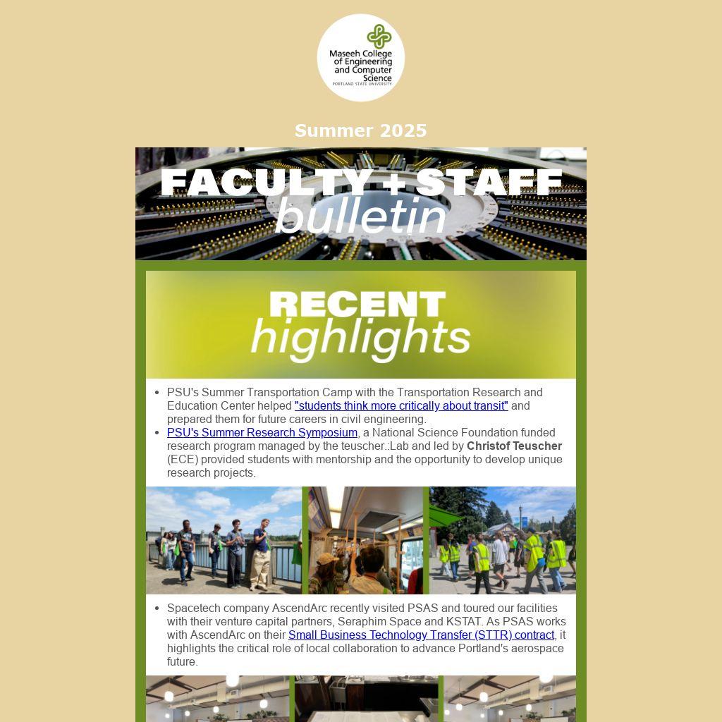 - On September 19th, from 10-11:30 am at the Lincoln Performance Hall (LH175) all Portland State employees are invited to a Town Hall on the financial sustainability plan. This is a valuable opportunity to learn about the university’s budget and our path forward as a thriving university. President Ann Cudd and Provost Shelly Chabon will be presenting and answering questions.