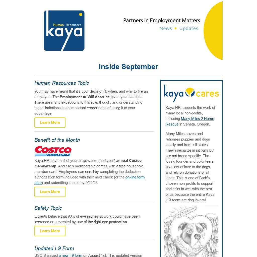 Kaya HR pays half of your employee's (and your) annual Costco membership. And each membership comes with a free household member card! Employees can enroll by completing the deduction authorization form included with their next check (or the on-line form here) and submitting it to us by 9/22/23.