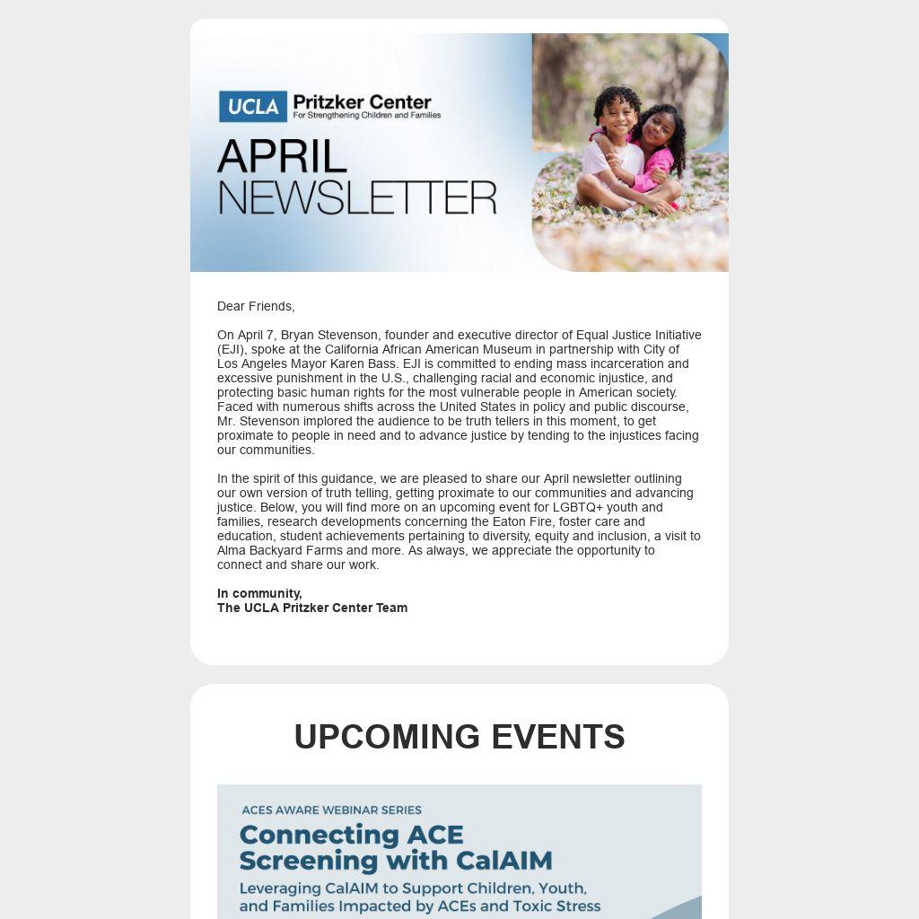 In the spirit of this guidance, we are pleased to share our April newsletter outlining our own version of truth telling, getting proximate to our communities and advancing justice. Below, you will find more on an upcoming event for LGBTQ+ youth and families, research developments concerning the Eaton Fire, foster care and education, student achievements pertaining to diversity, equity and inclusion, a visit to Alma Backyard Farms and more. As always, we appreciate the opportunity to connect and share our work.