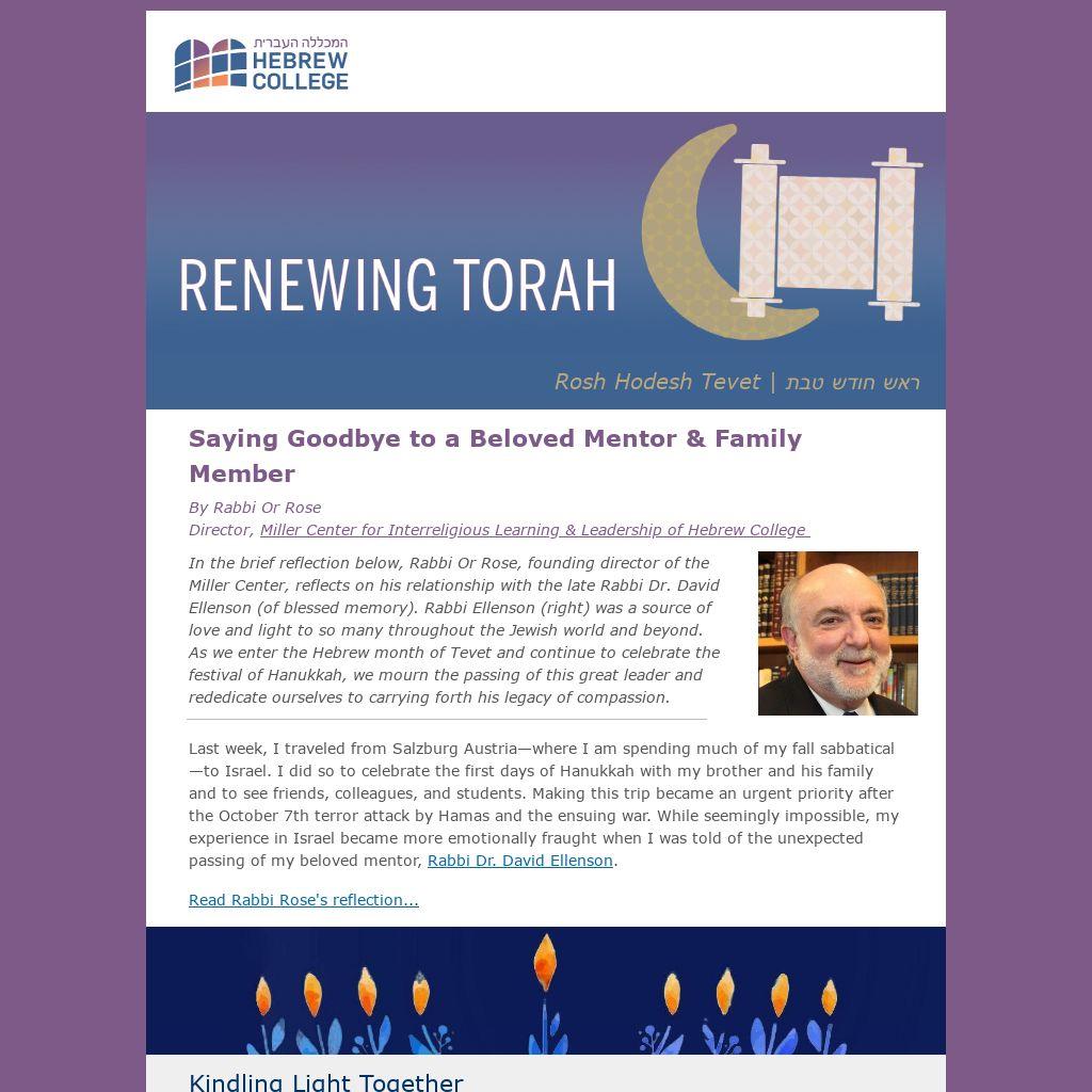 In the brief reflection below, Rabbi Or Rose, founding director of the Miller Center, reflects on his relationship with the late Rabbi Dr. David Ellenson (of blessed memory). Rabbi Ellenson (right) was a source of love and light to so many throughout the Jewish world and beyond. As we enter the Hebrew month of Tevet and continue to celebrate the festival of Hanukkah, we mourn the passing of this great leader and rededicate ourselves to carrying forth his legacy of compassion.