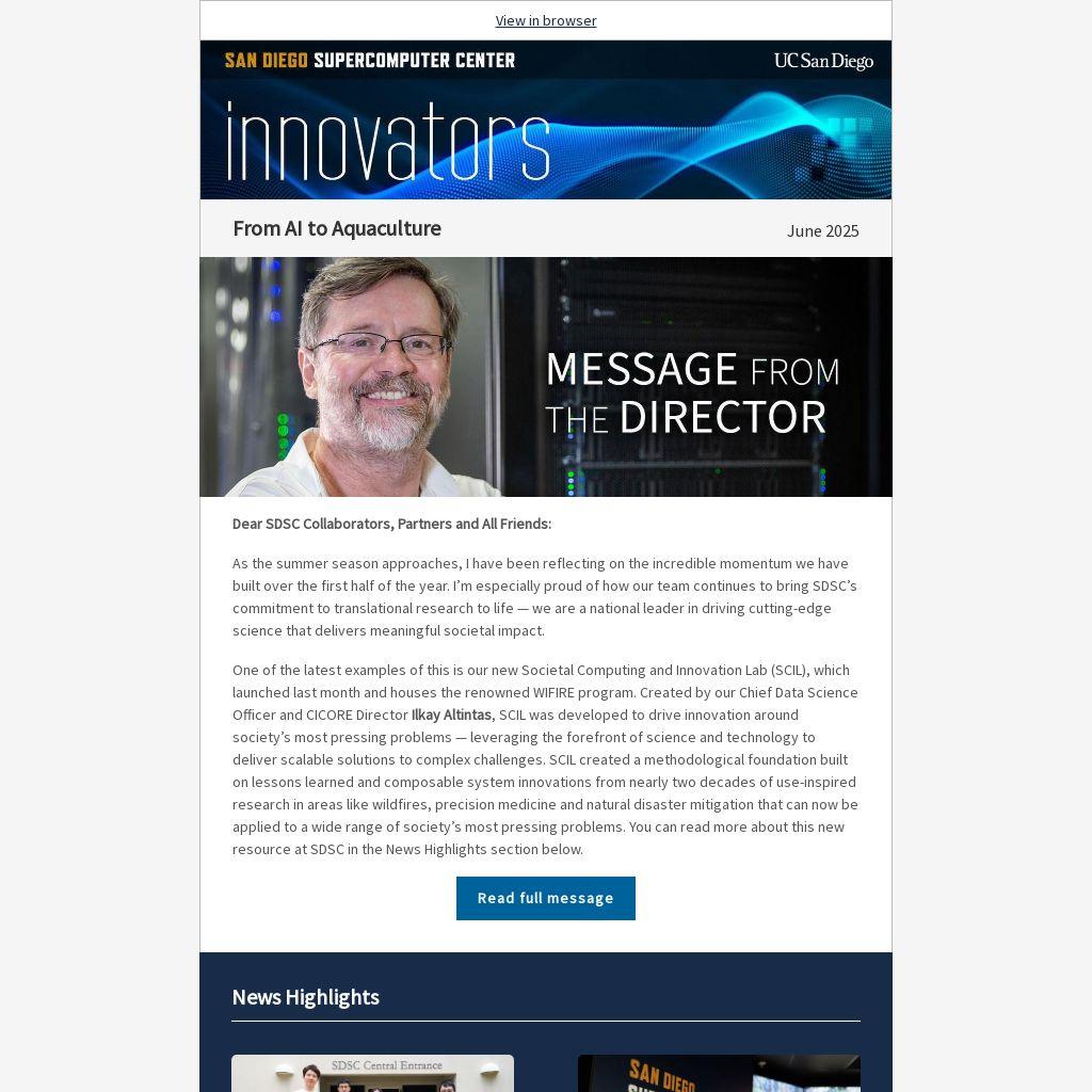 As the summer season approaches, I have been reflecting on the incredible momentum we have built over the first half of the year. I’m especially proud of how our team continues to bring SDSC’s commitment to translational research to life — we are a national leader in driving cutting-edge science that delivers meaningful societal impact.