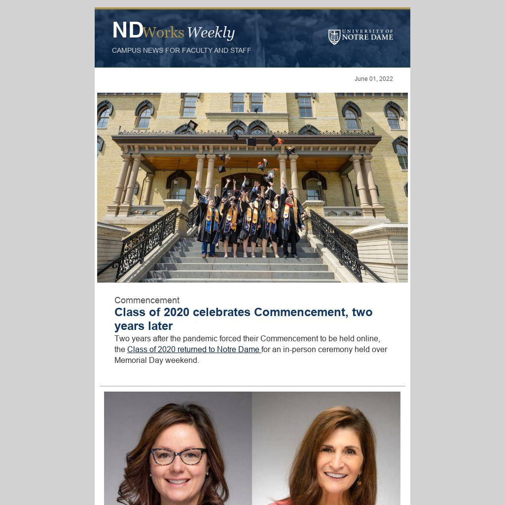 The main entrance to campus, at Holy Cross Drive and Notre Dame Avenue, will be closed, beginning Monday, June 6, so a new campus entrance can be constructed over the summer. The bookstore parking lot will also be improved this summer and the current basketball courts, west of the bookstore, will become a parking lot for faculty and staff.