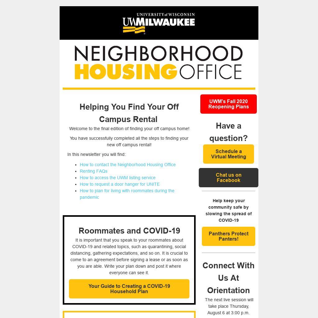 It is important that you speak to your roommates about COVID-19 and related topics, such as quarantining, social distancing, gathering expectations, and so on. It is crucial to come to an agreement before signing a lease or as soon as you are able. Write your plan down and post it where everyone can see it.