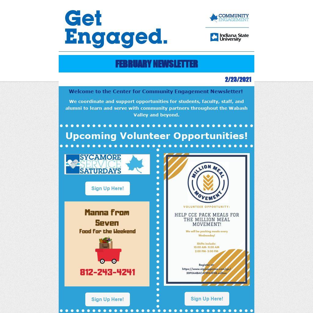 Welcome to the Center for Community Engagement Newsletter! We coordinate an