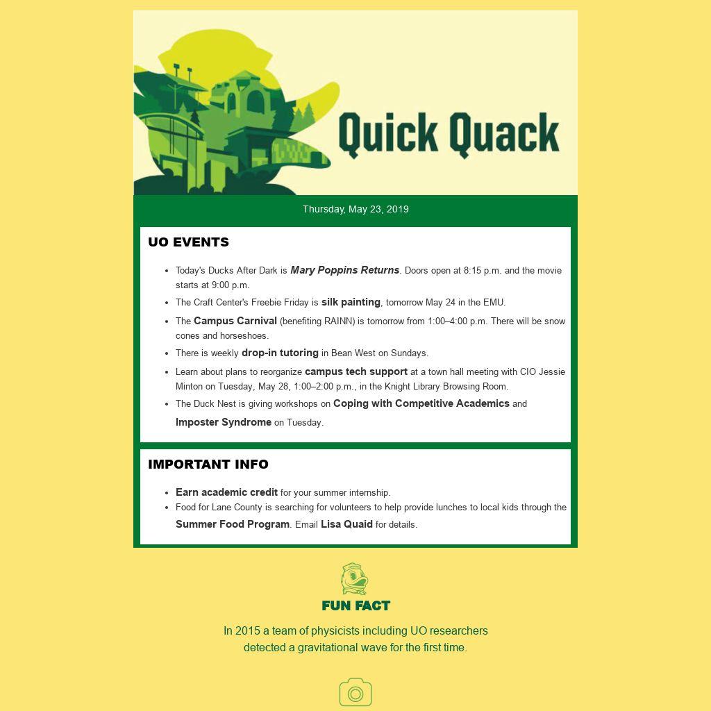 Learn about plans to reorganize campus tech support at a town hall meeting with CIO Jessie Minton on Tuesday, May 28, 1:00–2:00 p.m., in the Knight Library Browsing Room.