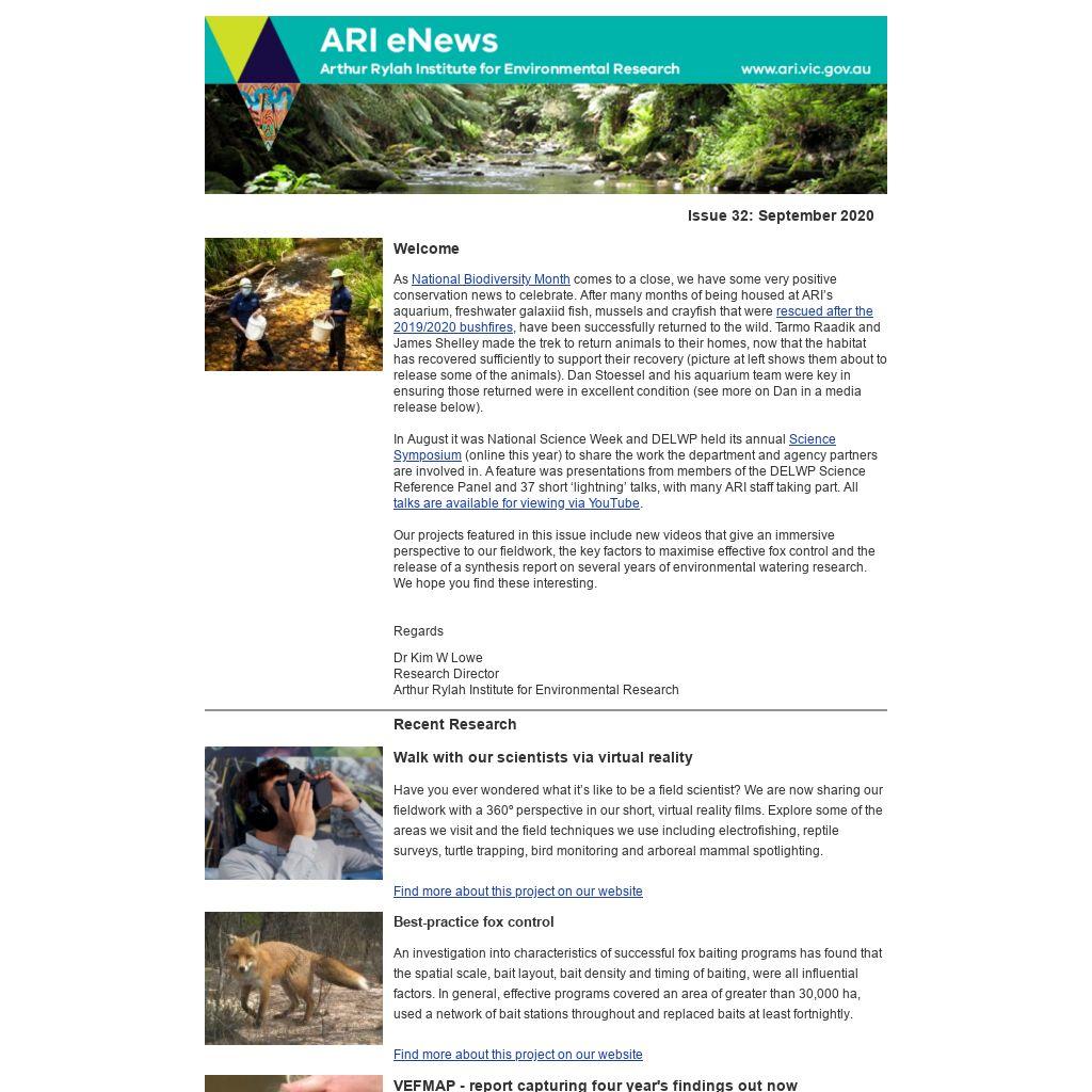 If you know someone who may like to receive the ARI eNews, forward this email on using the 'Share this' option at the top. If this has been forwarded on to you there is an option to sign-up below, or use the ‘Subscribe’ button on our website, or email research.ari@delwp.vic.gov.au to be added to the ARI eNews mailing list.