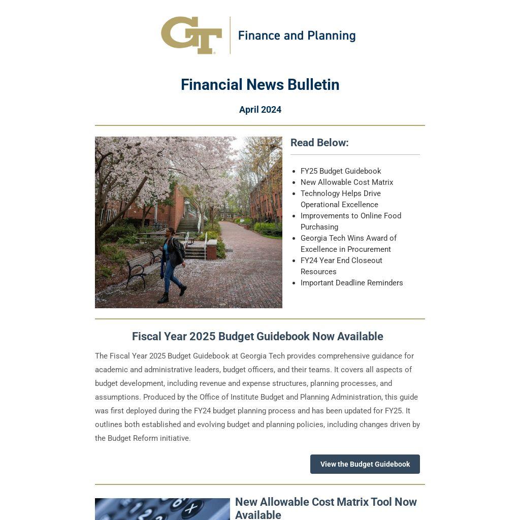 The Georgia Tech financial community was invited to attend the FY2024 Year-End Town Hall to discuss processes, procedures, and deadlines for a successful year-end close.