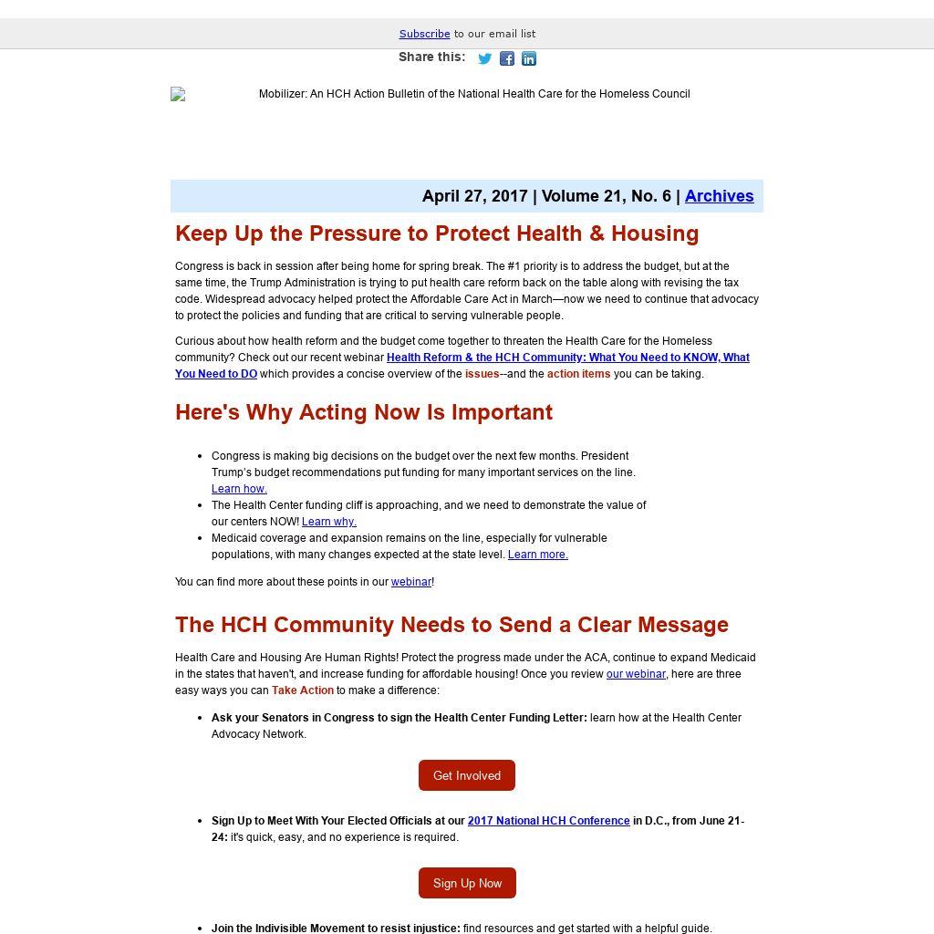 Congress is back in session after being home for spring break. The #1 priority is to address the budget, but at the same time, the Trump Administration is trying to put health care reform back on the table along with revising the tax code. Widespread advocacy helped protect the Affordable Care Act in March—now we need to continue that advocacy to protect the policies and funding that are critical to serving vulnerable people.