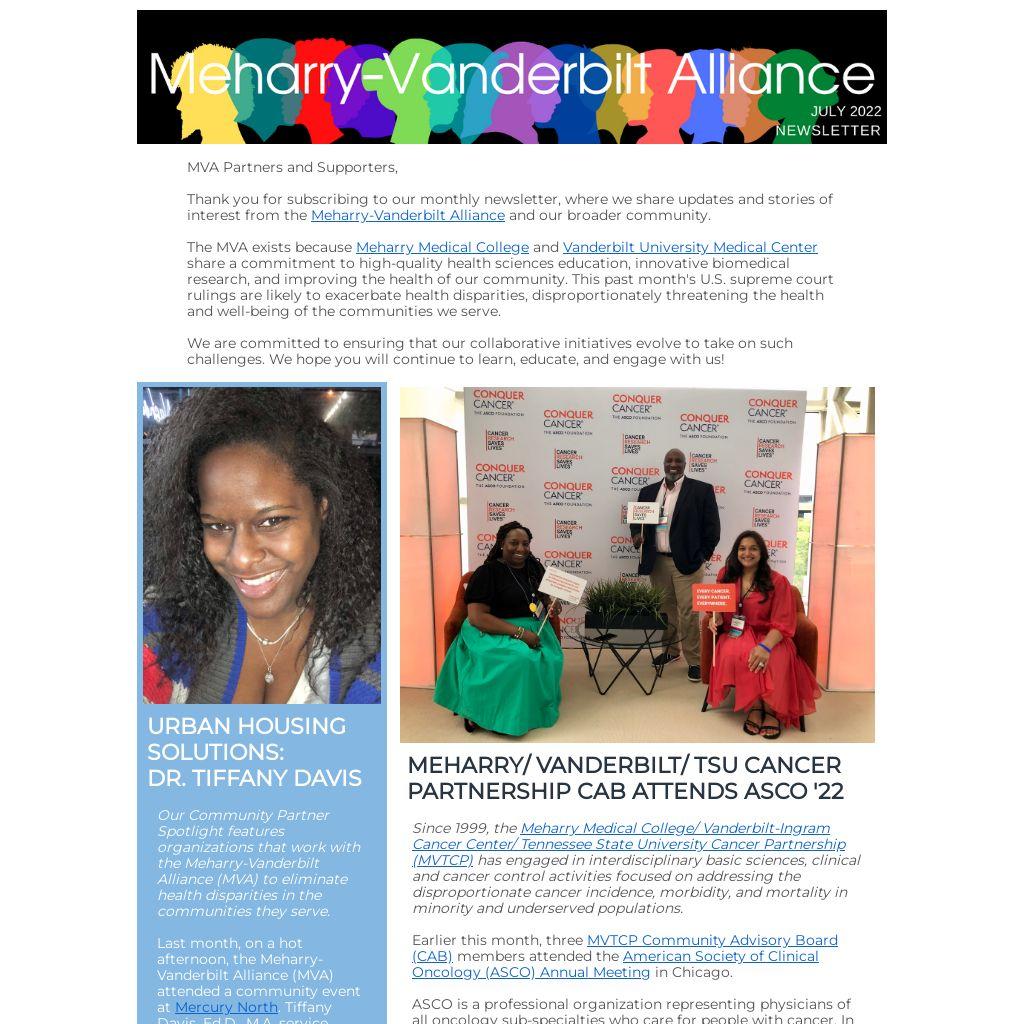 Thank you for subscribing to our monthly newsletter, where we share updates and stories of interest from the Meharry-Vanderbilt Alliance and our broader community.