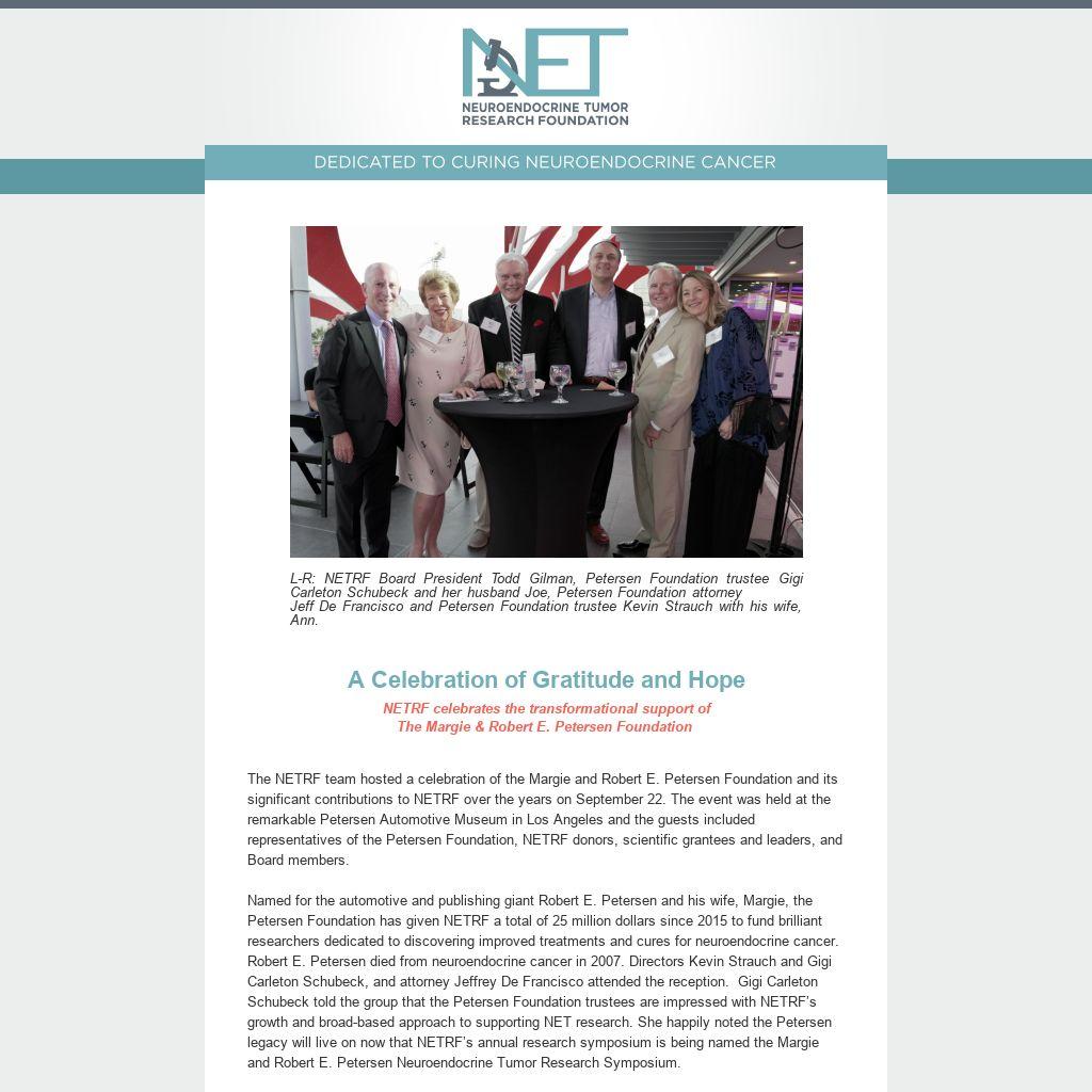 The 2022 walk surpassed the family's goal of raising $6,000, and over the past 12+ years, the event has raised more than $80,000 for NETRF. "We found knowledge, hope, and kinship through NETRF, and if our fundraising efforts can augment and support that outreach for other NET families, then that is all the gratitude we need," said Wayne.