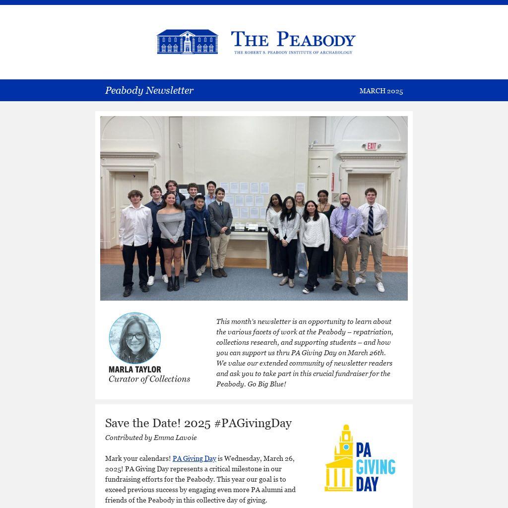 Mark your calendars! PA Giving Day is Wednesday, March 26, 2025! PA Giving Day represents a critical milestone in our fundraising efforts for the Peabody. This year our goal is to exceed previous success by engaging even more PA alumni and friends of the Peabody in this collective day of giving.
