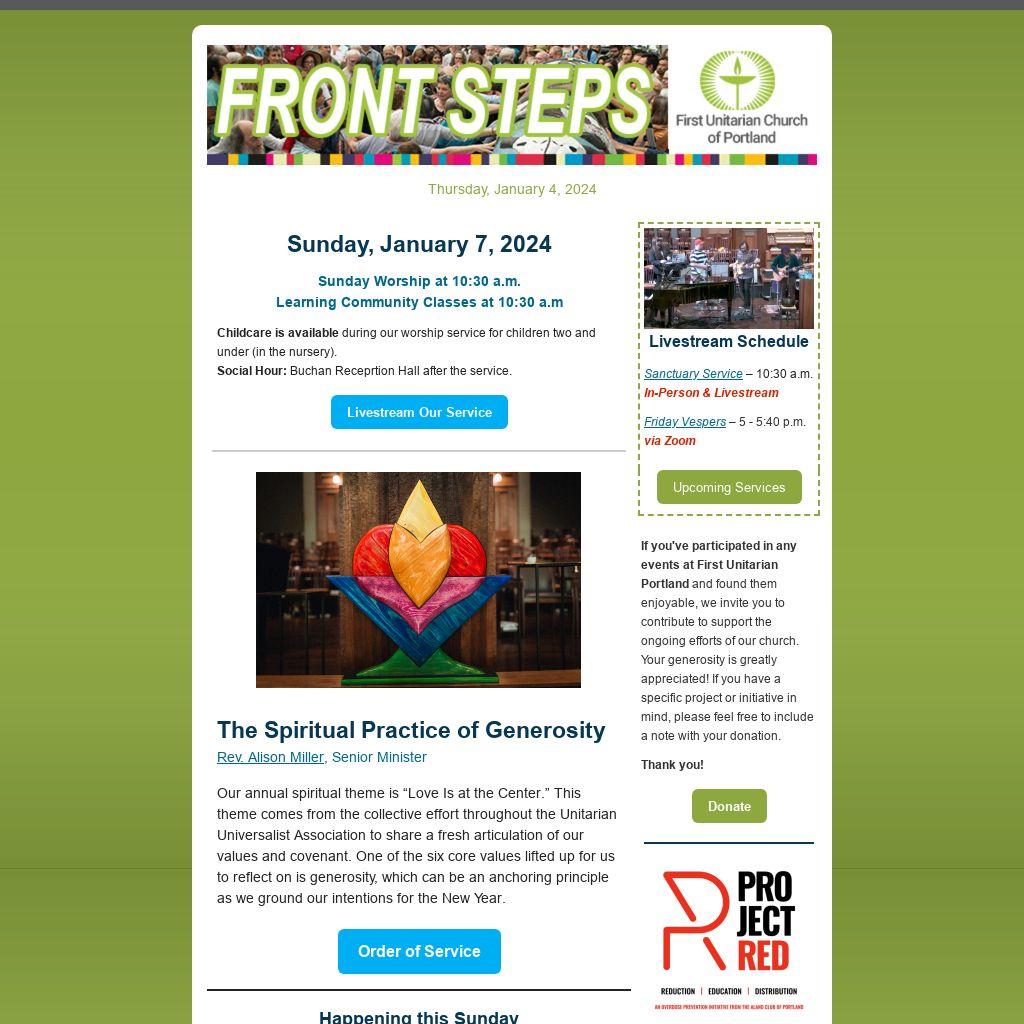 If you've participated in any events at First Unitarian Portland and found them enjoyable, we invite you to contribute to support the ongoing efforts of our church. Your generosity is greatly appreciated! If you have a specific project or initiative in mind, please feel free to include a note with your donation.
