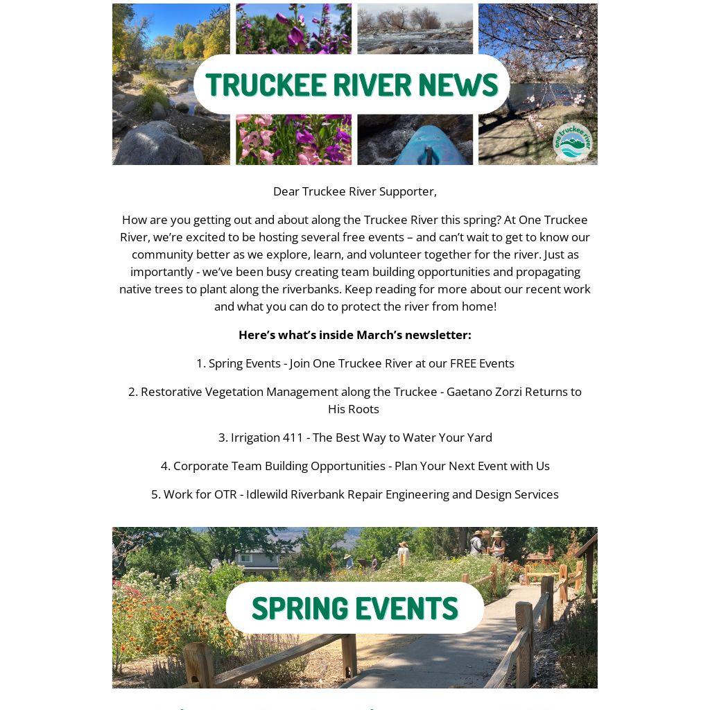 Check out our spring offerings below. Then, click through to our website for event details –and RSVP to claim your spot. Whether you live, work, or spend time along the Truckee River, we look forward to sharing and caring for the river with you.