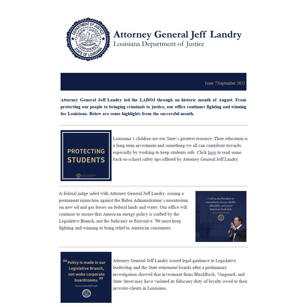 Attorney General Jeff Landry's Office argued before the U.S. Fifth Circuit Court of Appeals, defending the rule of law and thousands of our neighbors who ply their trade in the horse industry. At issue was HISA – the Horseracing Integrity and Safety Act which was passed on December 22, 2020 in the dark of night and tucked into the COVID relief package. It's an attempt to federalize horse racing, an industry the State of Louisiana has regulated for two centuries.