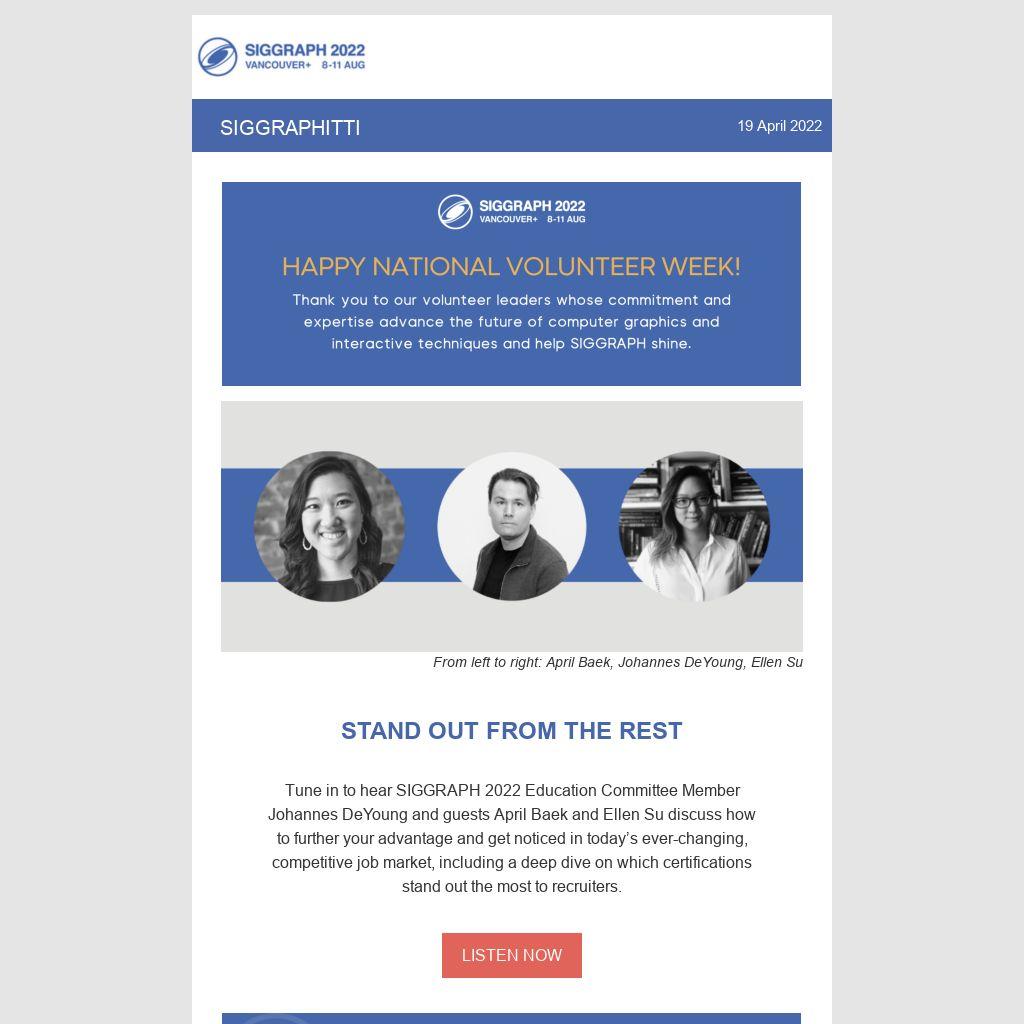 Tune in to hear SIGGRAPH 2022 Education Committee Member Johannes DeYoung and guests April Baek and Ellen Su discuss how to further your advantage and get noticed in today’s ever-changing, competitive job market, including a deep dive on which certifications stand out the most to recruiters.