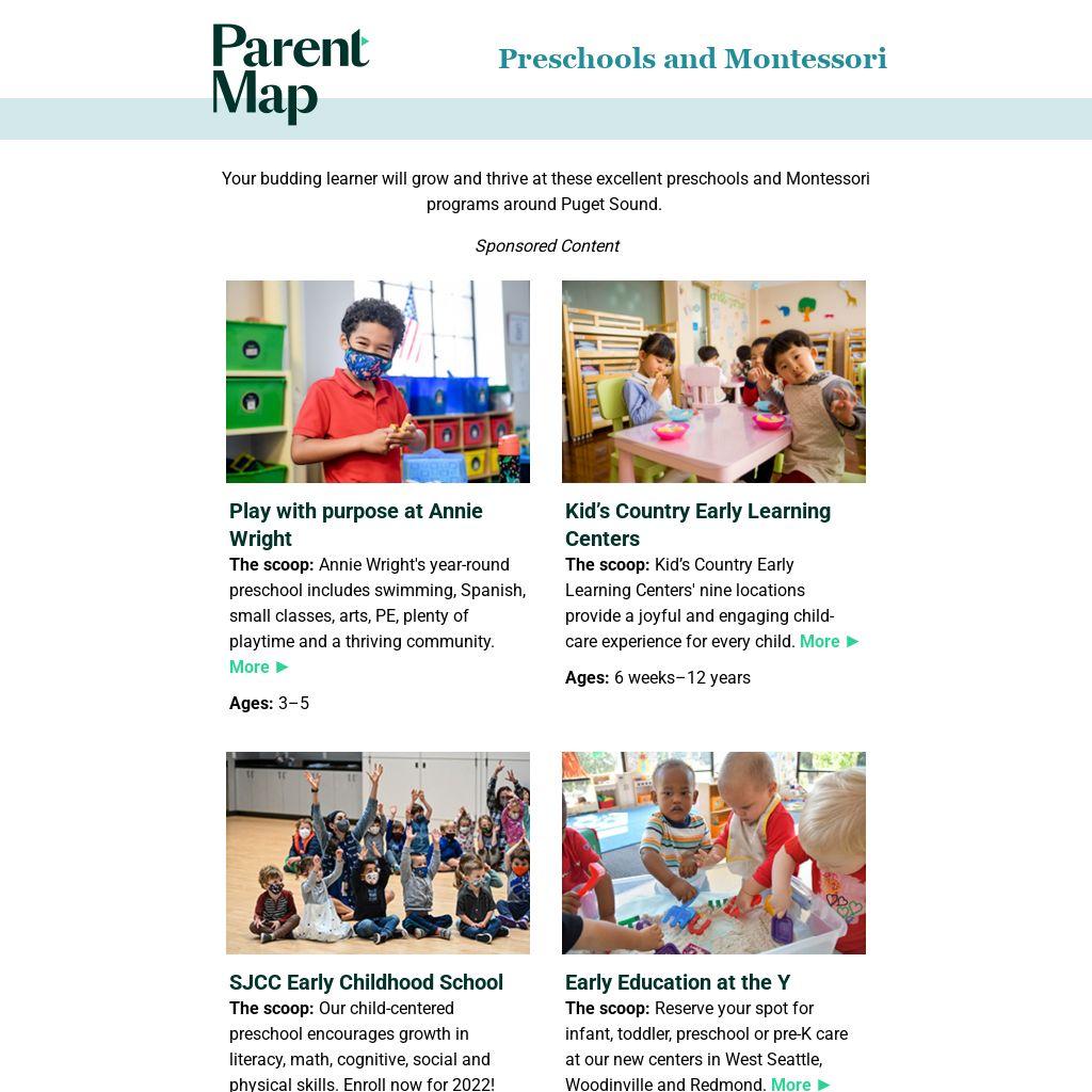 Explore ParentMap’s free Preschool Preview app to find the perfect fit for your child. Discover more than 45 interactive preschool booths, watch recorded school info sessions and more. Start your school search here!