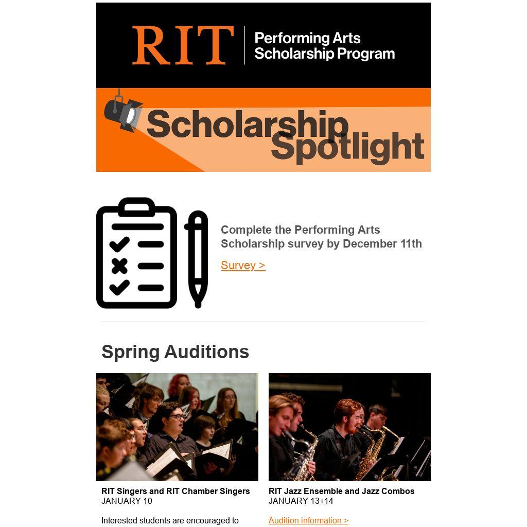 | Complete the Performing Arts Scholarship survey by December 11th