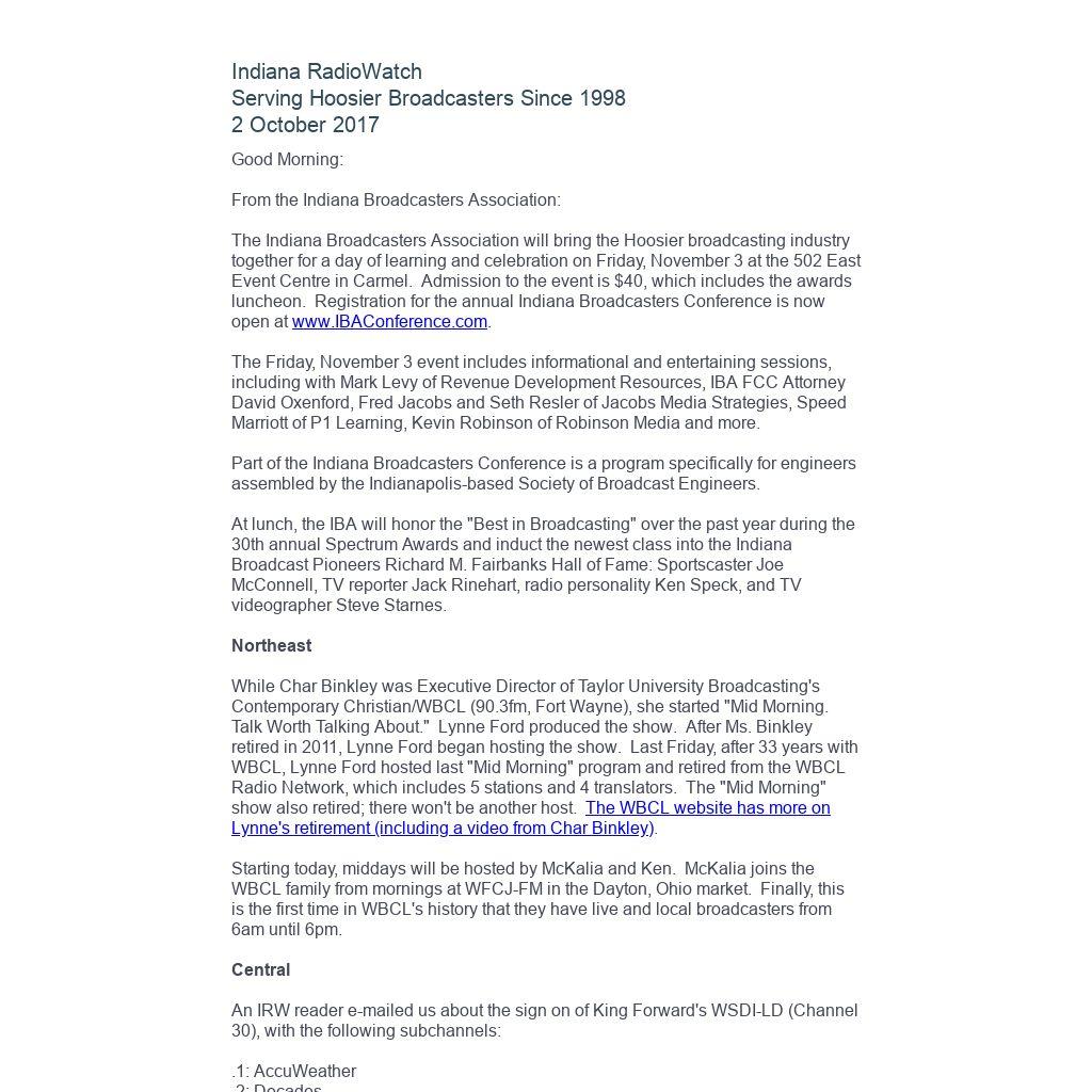 From the Indiana Broadcasters Association: