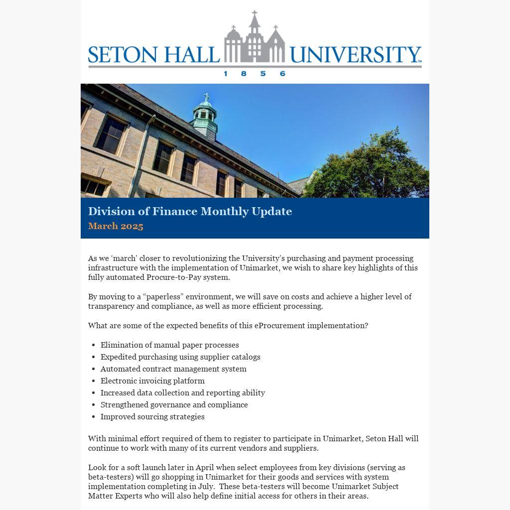 Questions / suggestions / concerns on Unimarket and other Finance initiatives? Contact us at: OfficeoftheCFO@shu.edu.