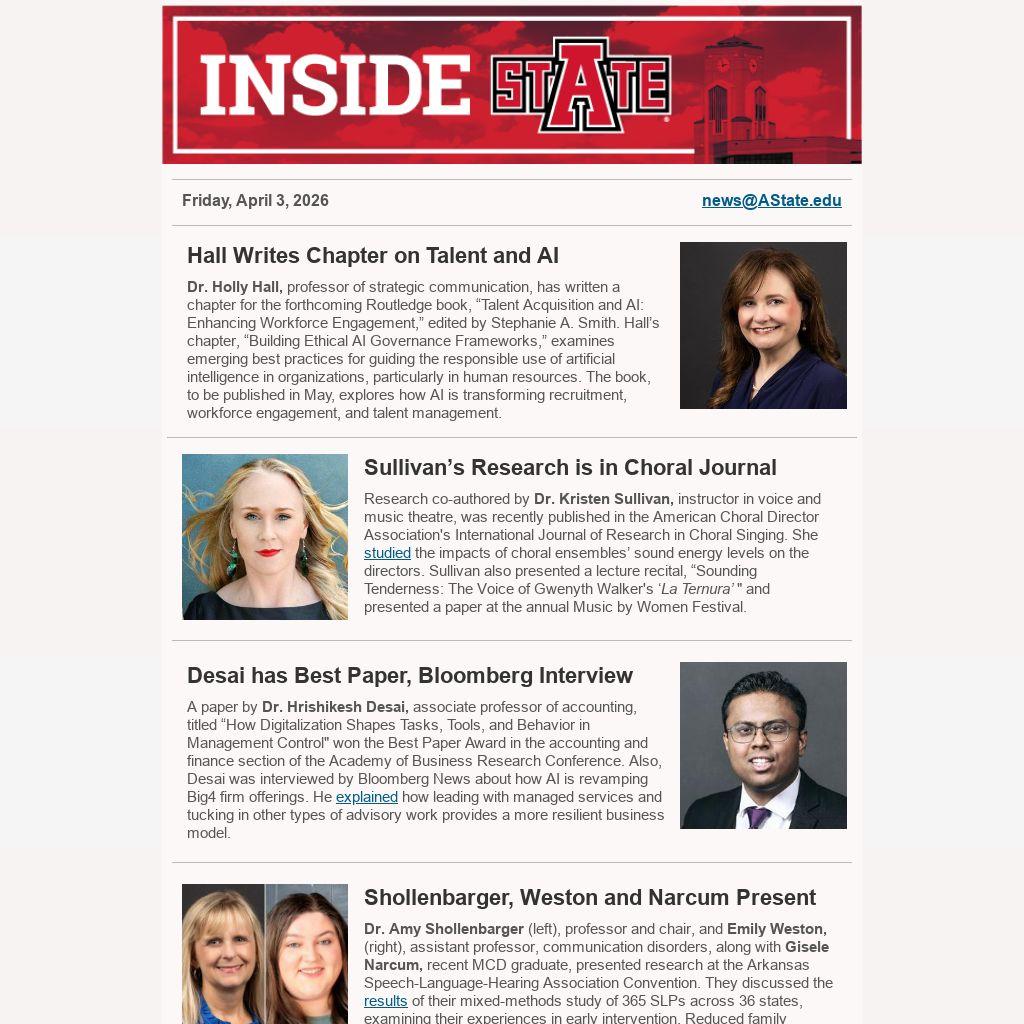 A paper by Dr. Hrishikesh Desai, associate professor of accounting, titled “How Digitalization Shapes Tasks, Tools, and Behavior in Management Control" won the Best Paper Award in the accounting and finance section of the Academy of Business Research Conference. Also, Desai was interviewed by Bloomberg News about how AI is revamping Big4 firm offerings. He explained how leading with managed services and tucking in other types of advisory work provides a more resilient business model.