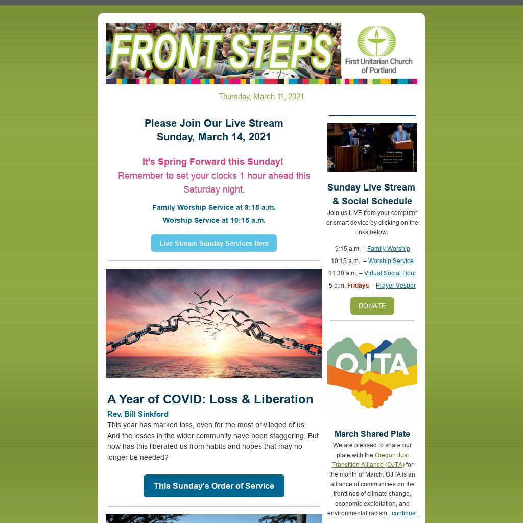 Church Communications: Do you receive messages from the church including this weekly E-News and our Staying Connected emails? To receive church emails send a note to etafuri@firstunitarianportland.org.