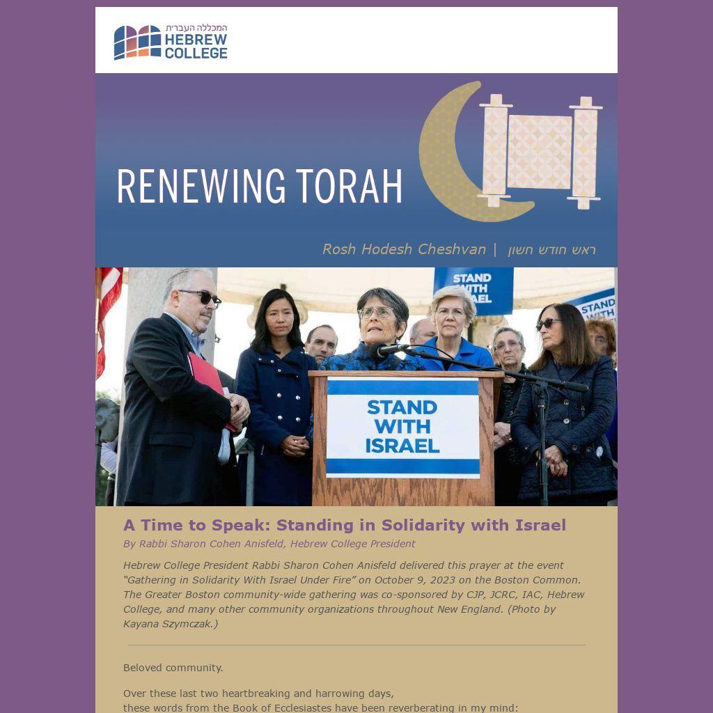 Hebrew College President Rabbi Sharon Cohen Anisfeld delivered this prayer at the event “Gathering in Solidarity With Israel Under Fire” on October 9, 2023 on the Boston Common. The Greater Boston community-wide gathering was co-sponsored by CJP, JCRC, IAC, Hebrew College, and many other community organizations throughout New England. (Photo by Kayana Szymczak.)